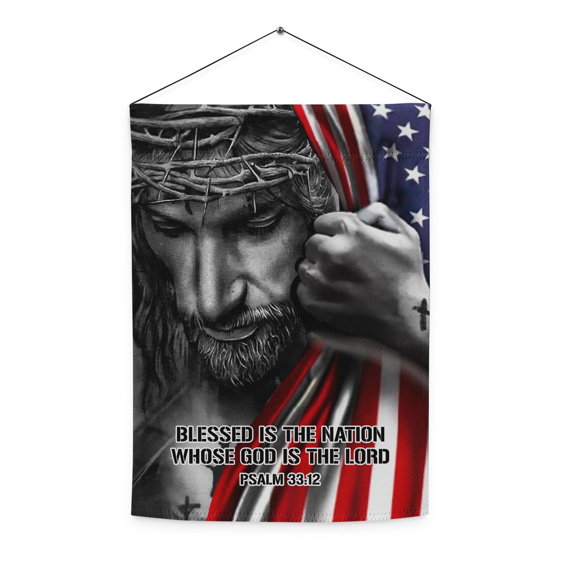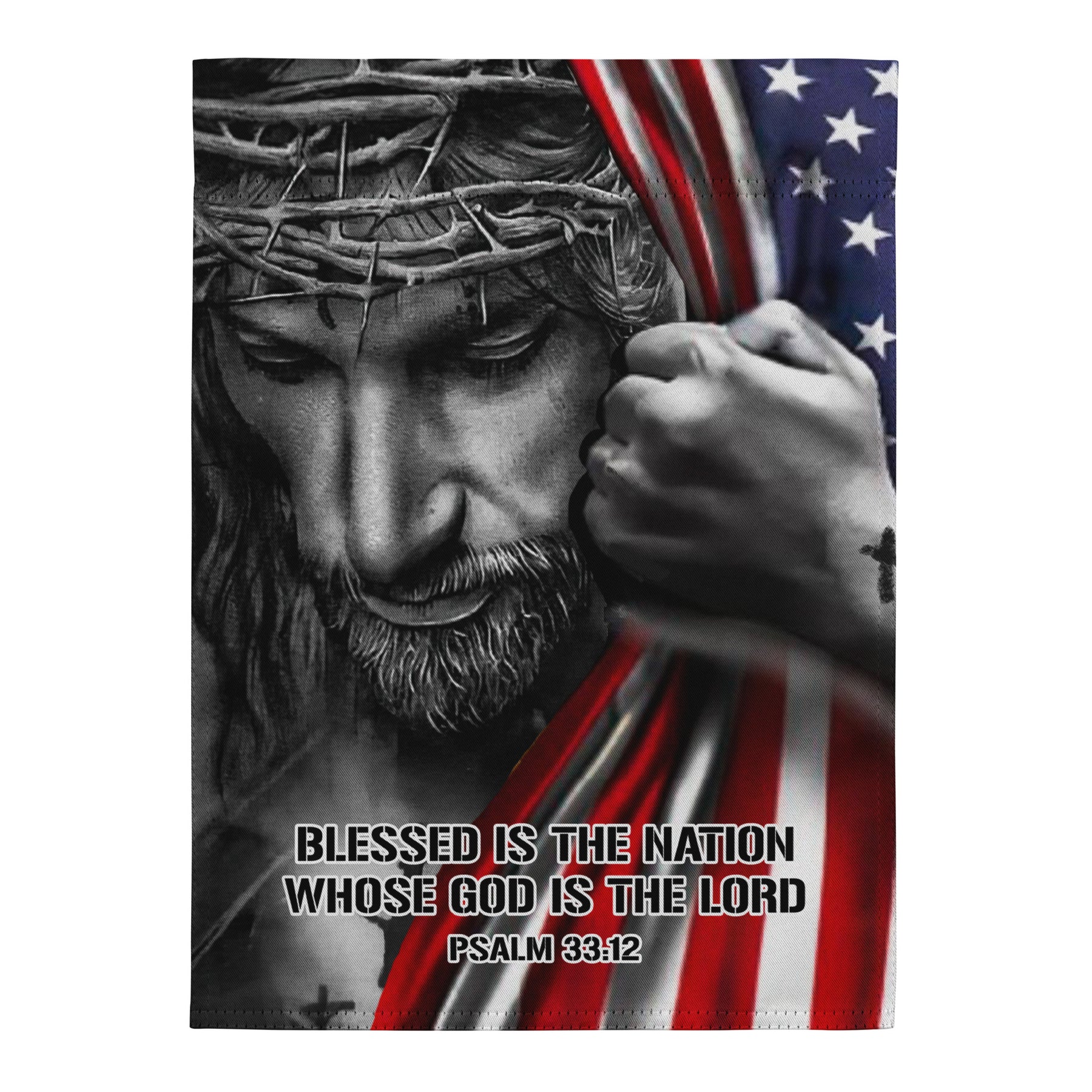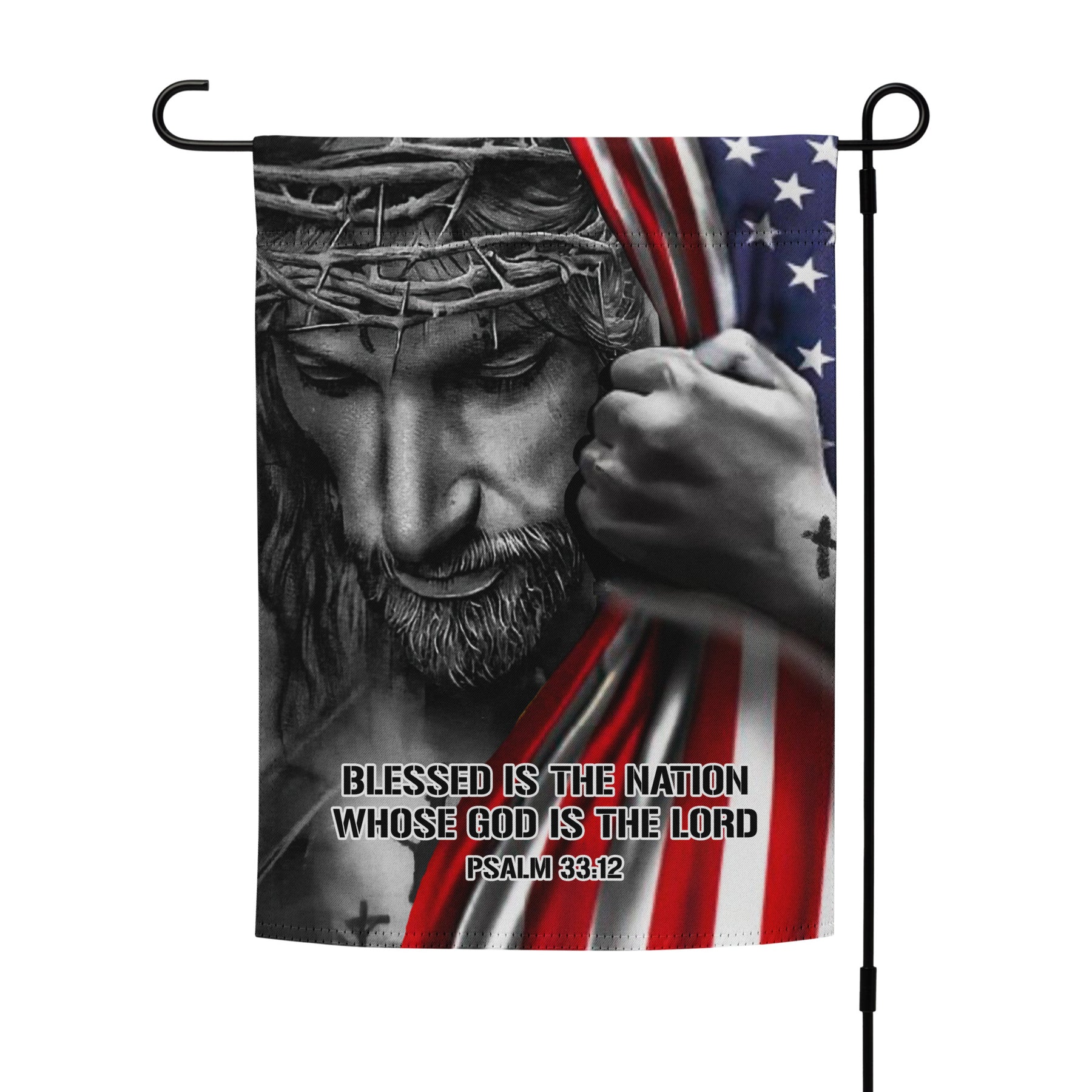 Enhance your home's curb appeal and proudly express your values with our Jesus Holding American Flag Garden Flag. This beautiful, double-sided flag is your go-to choice for versatile and durable outdoor decor, perfect for celebrating a special occasion or simply adding a welcoming touch to your home. Made from robust 100% polyester and featuring a convenient pole hem, this 12"×17" flag ensures the vibrant image of Jesus holding the American Flag is visible from any angle, standing up to the elements while clearly displaying your message of faith and patriotism.
