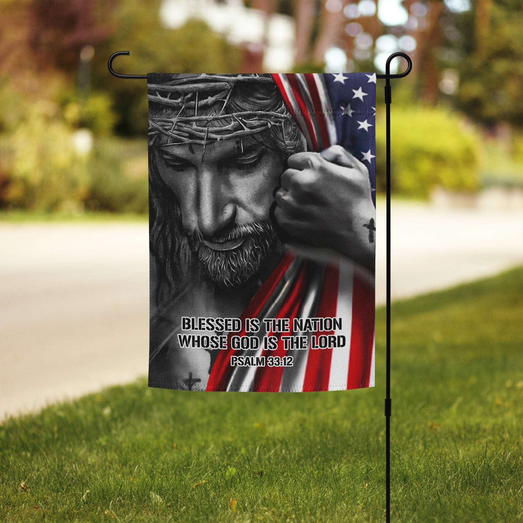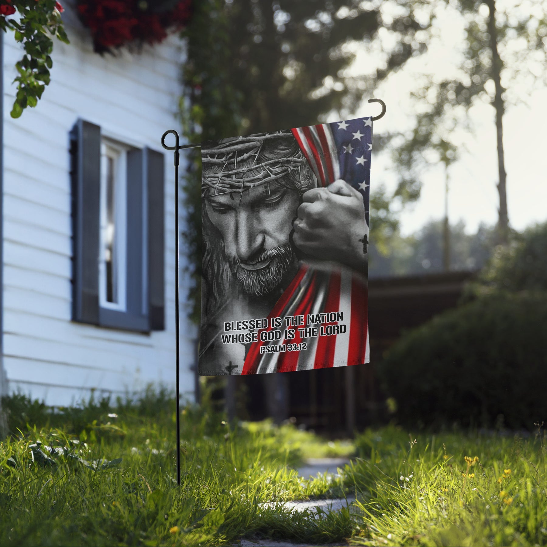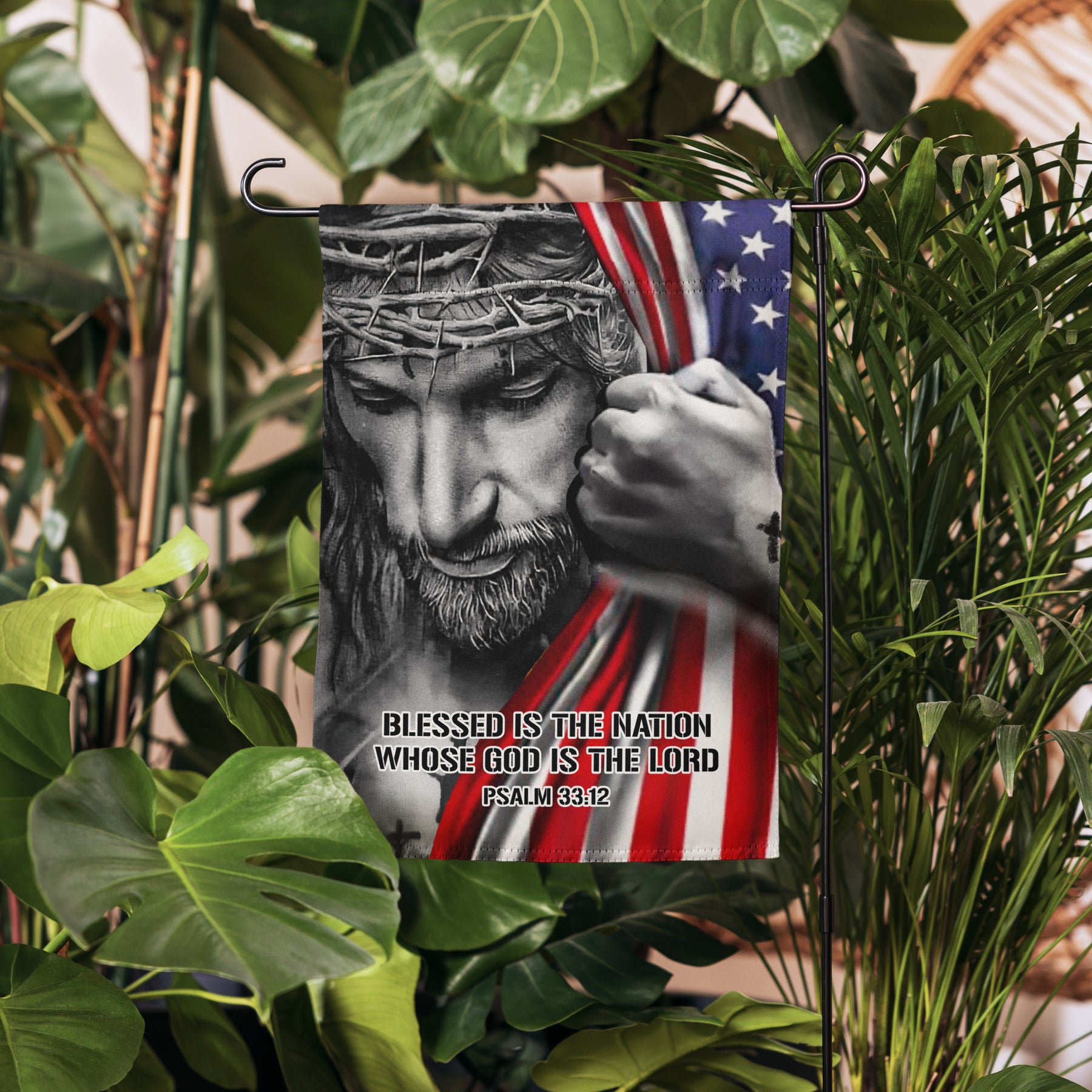 Faith & Freedom: Jesus Holding American Flag Garden Flag