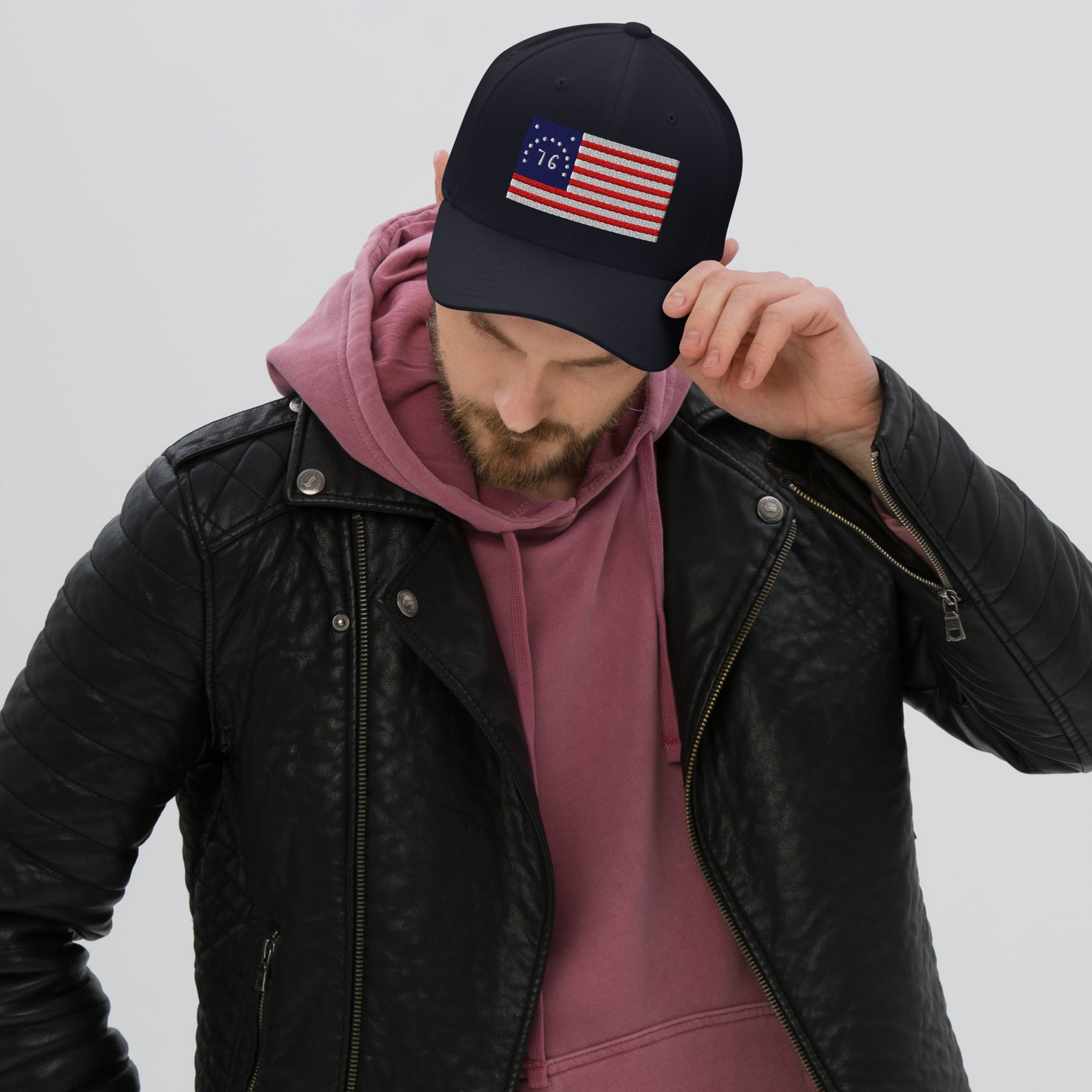 Experience the perfect blend of comfort and powerful history with our Flexfit Cap, featuring a stunning fully embroidered "76" Bennington Flag design. Unlike standard hats, this cap uses the innovative Flexfit technology with an elastic stretch band, ensuring a snug yet comfortable fit available in two sizes. With its modern athletic shape, classic curved visor, and premium quality, this cap provides all-day comfort while staying securely in place, making it an ideal choice for everyday wear.
