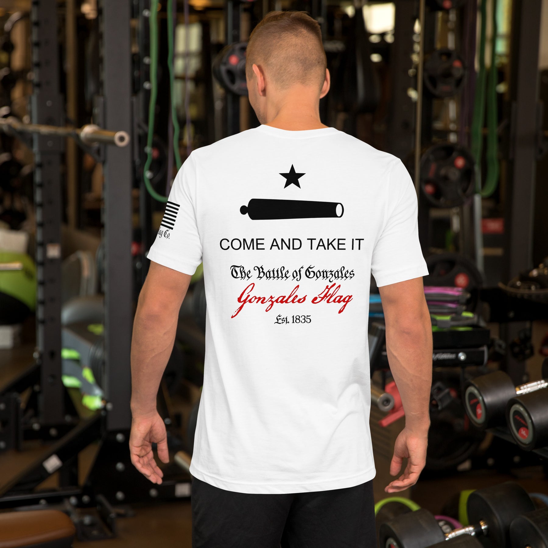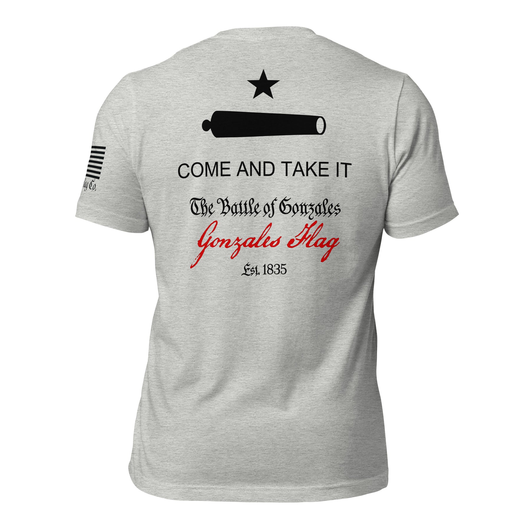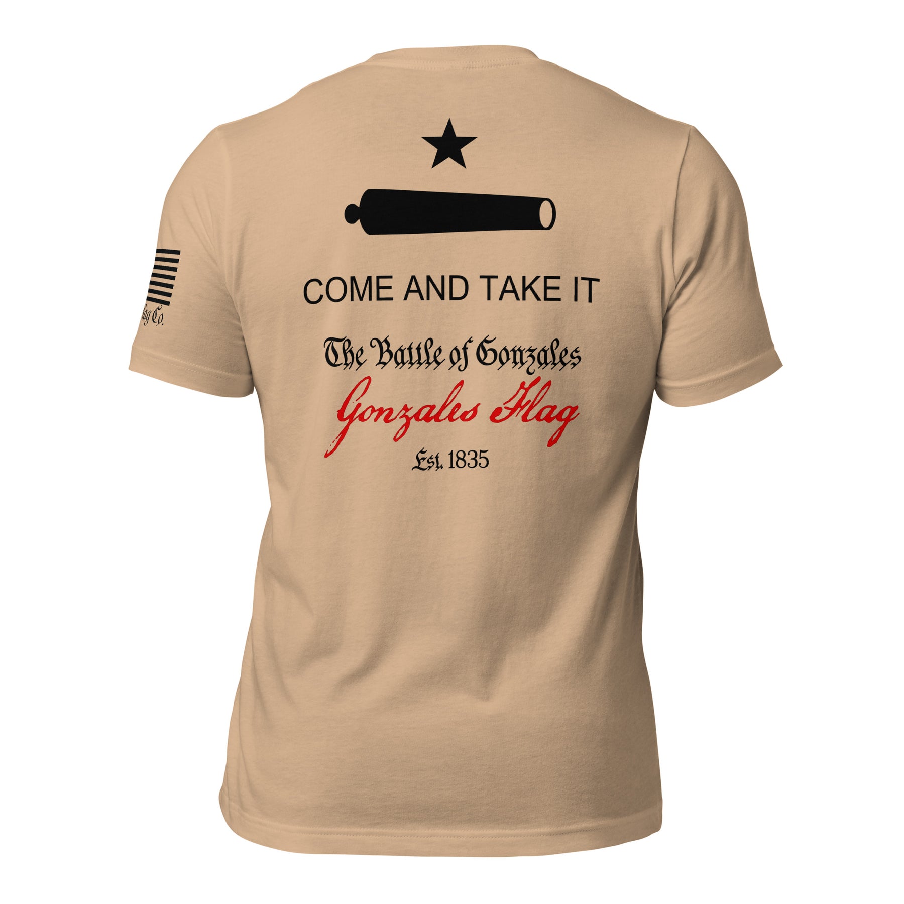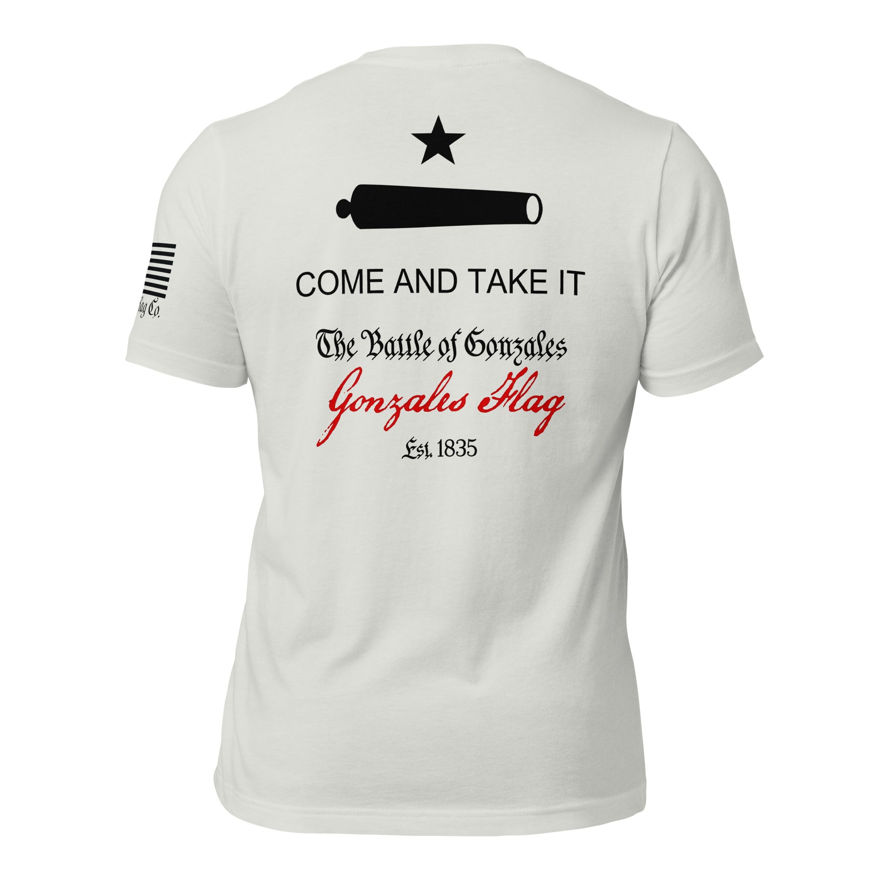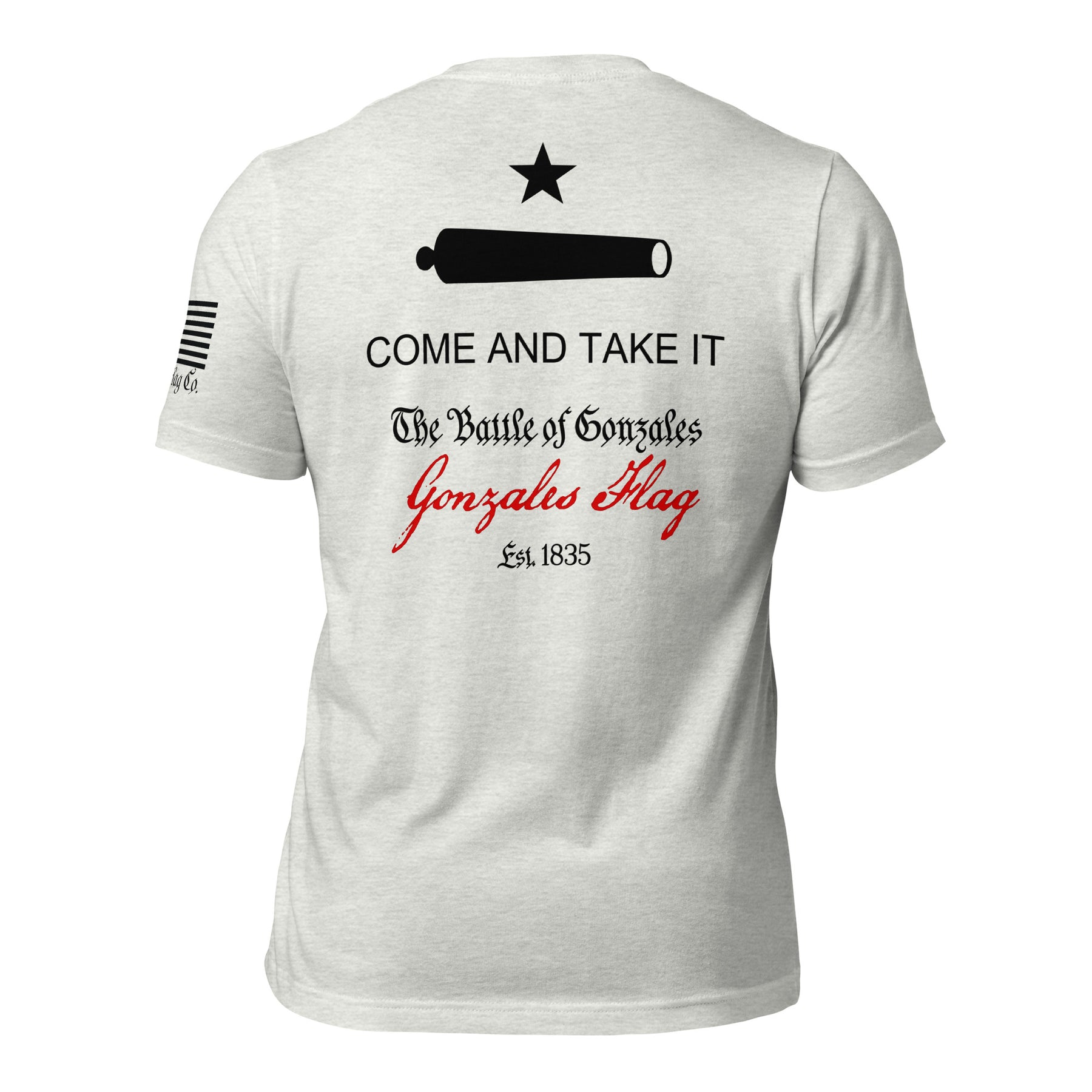 Wear a piece of American history with our Come and Take It Flag T-shirt, a symbol of defiance and the very first battle of the Texas Revolution. This iconic design represents the brave stand of the Texans at the Battle of Gonzales in 1835, who refused to surrender their cannon to the Mexican army. Crafted with high-quality DTG (Direct-to-Garment) printing, the historic flag is infused directly into the fabric, creating a soft, vintage feel. Unlike other methods, DTG printing ensures this powerful piece of history won't crack, peel, or fade, allowing its message of liberty to endure.