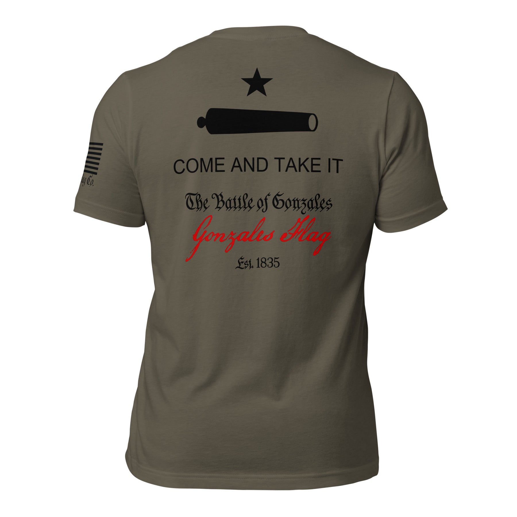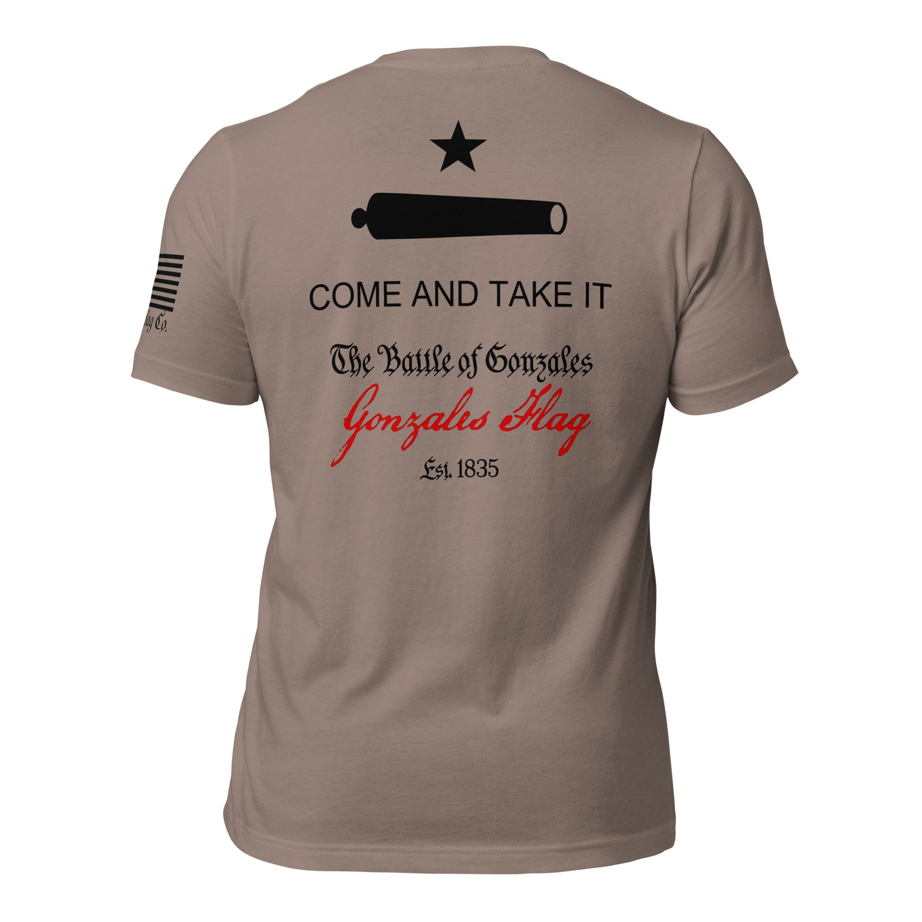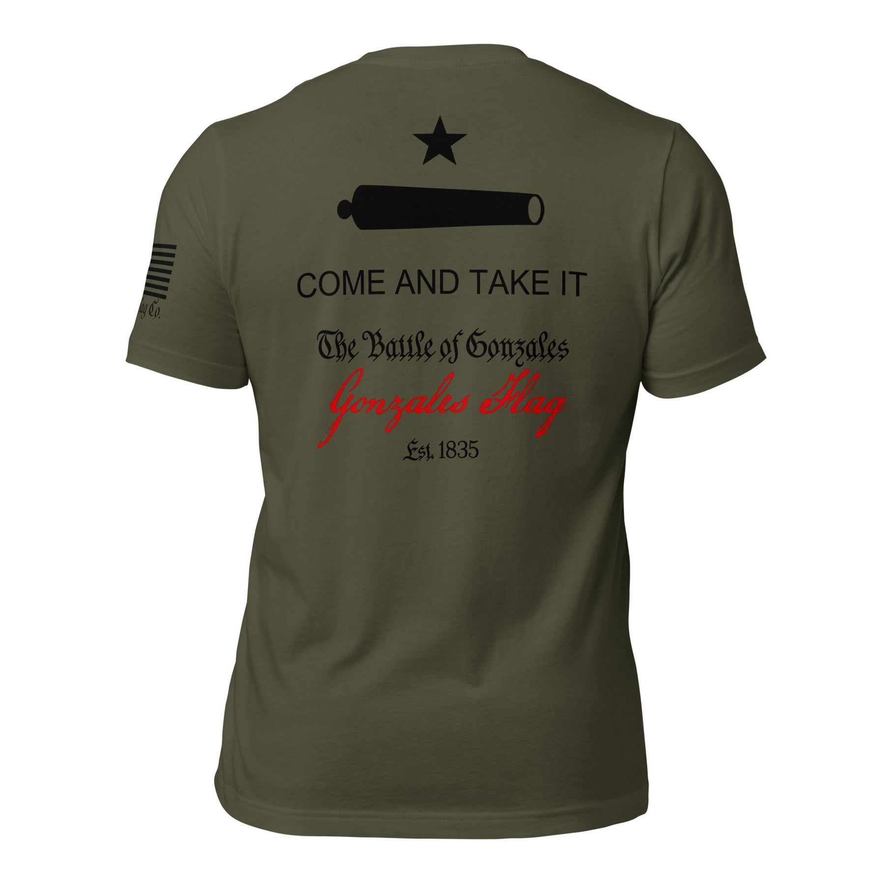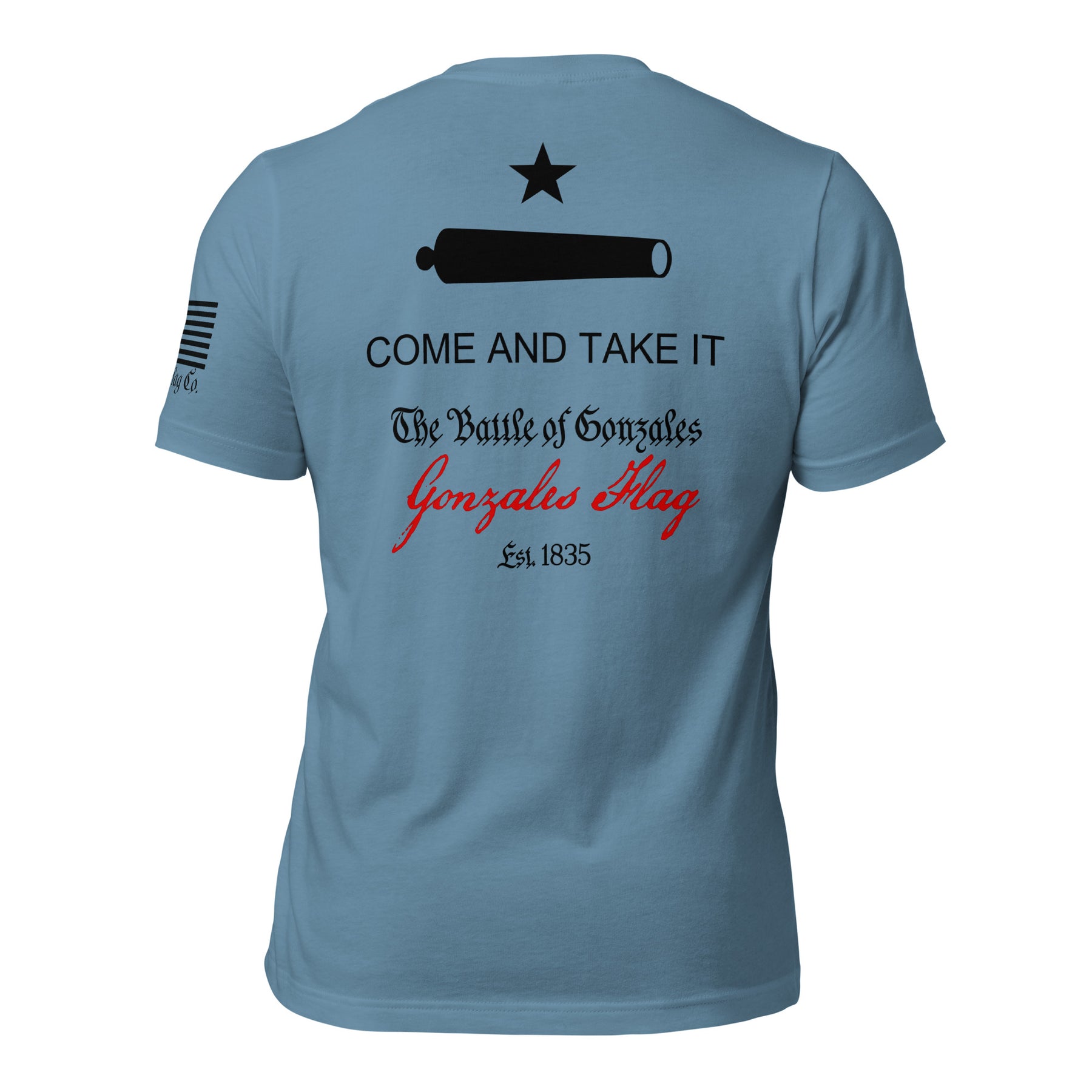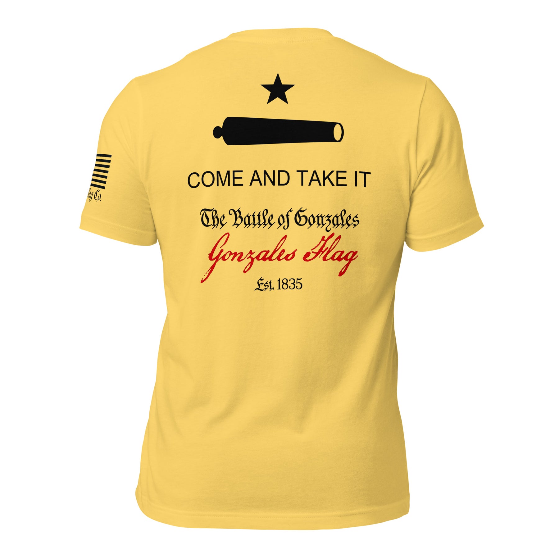 Wear a piece of American history with our Come and Take It Flag T-shirt, a symbol of defiance and the very first battle of the Texas Revolution. This iconic design represents the brave stand of the Texans at the Battle of Gonzales in 1835, who refused to surrender their cannon to the Mexican army. Crafted with high-quality DTG (Direct-to-Garment) printing, the historic flag is infused directly into the fabric, creating a soft, vintage feel. Unlike other methods, DTG printing ensures this powerful piece of history won't crack, peel, or fade, allowing its message of liberty to endure.