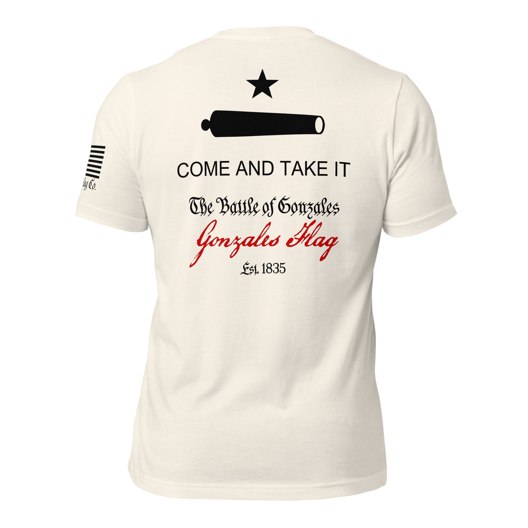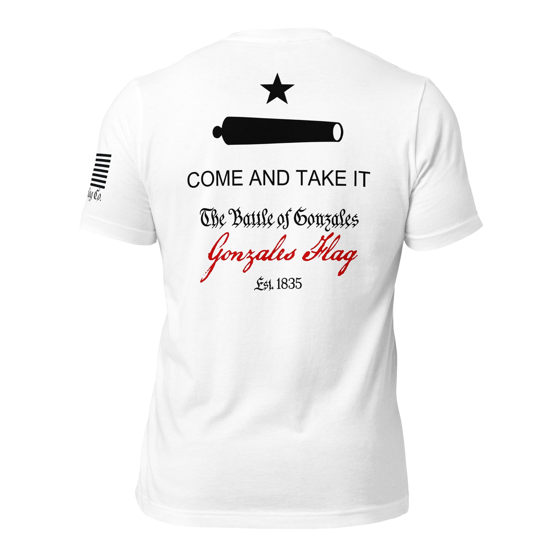 The flag raised at Gonzales was a simple but powerful statement. It featured a black star, the silhouette of the cannon, and the defiant phrase "Come and Take It" printed on a white banner. The flag was a direct response to the Mexican demand for the cannon, turning a call for surrender into a bold challenge.