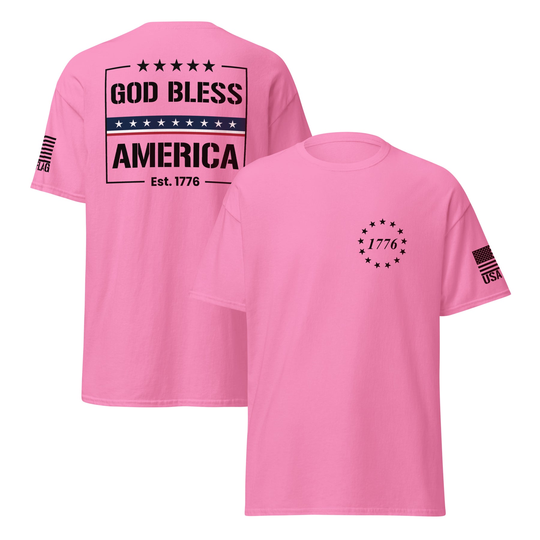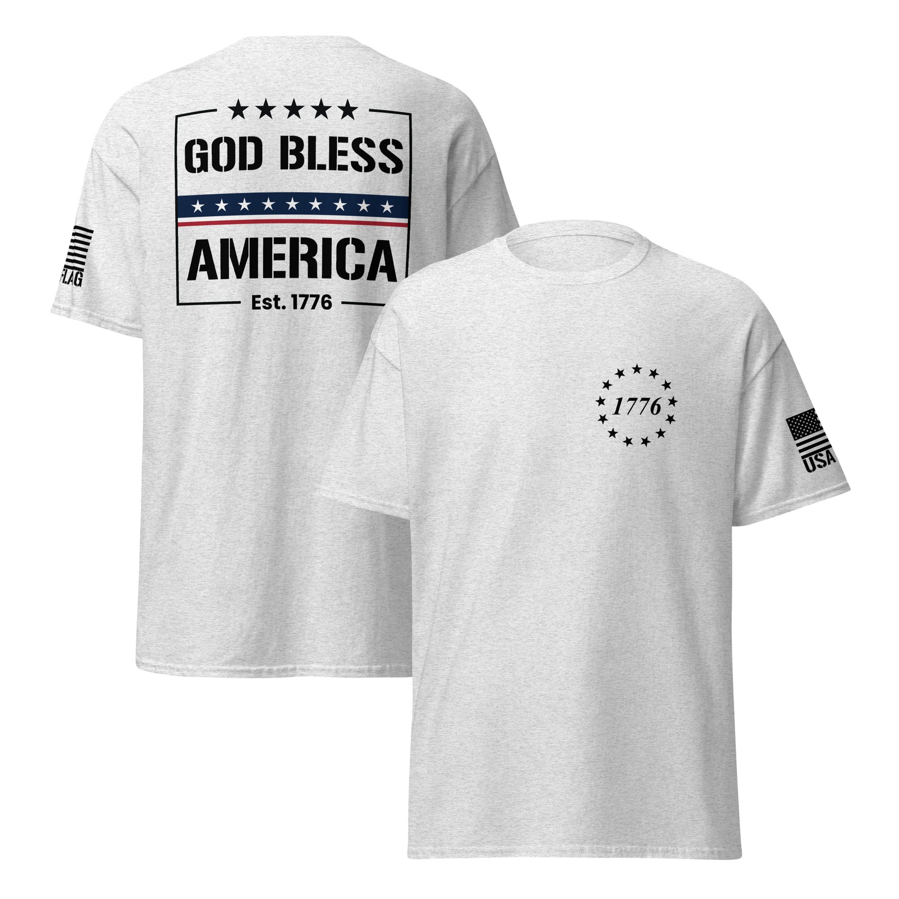 Declare your unwavering love for the USA with our premium God Bless America T-shirts. Crafted from ultra-soft, durable cotton, these tees are designed for exceptional comfort and lasting wear, letting you display your faith and national pride with confidence. Each shirt features classic designs that evoke the true spirit of American freedom and unity, perfect for national holidays, community events, or simply expressing your patriotism every day. Available in a range of sizes and styles for the entire family, these are more than just shirts—they're a statement of gratitude and devotion to the land we call home.