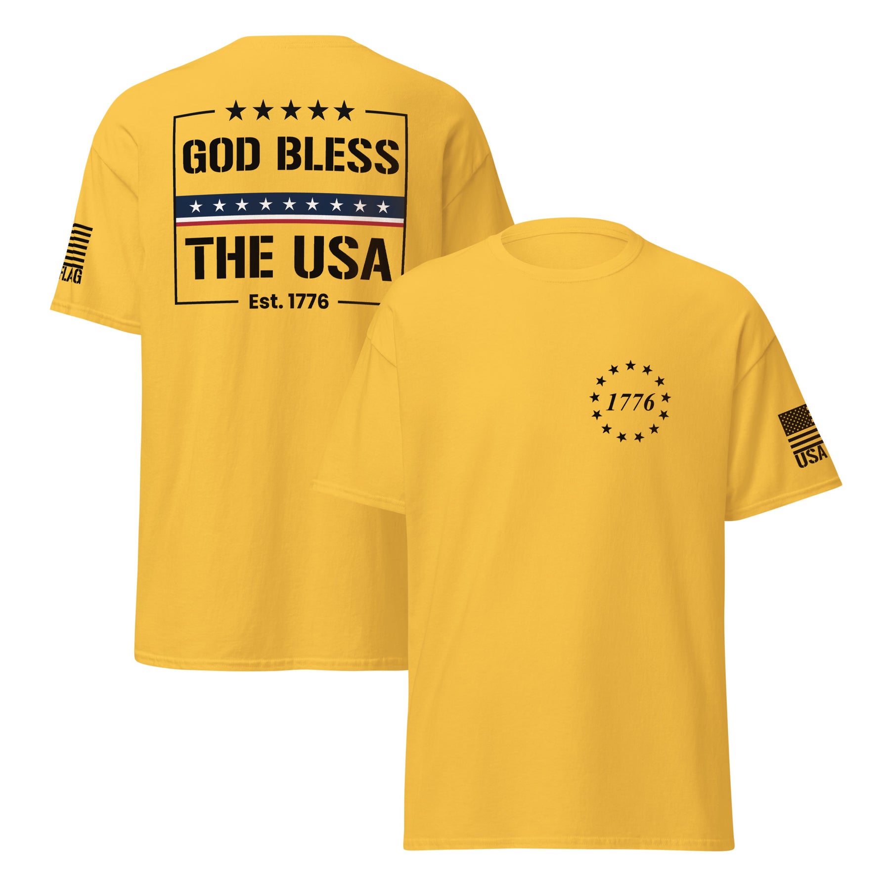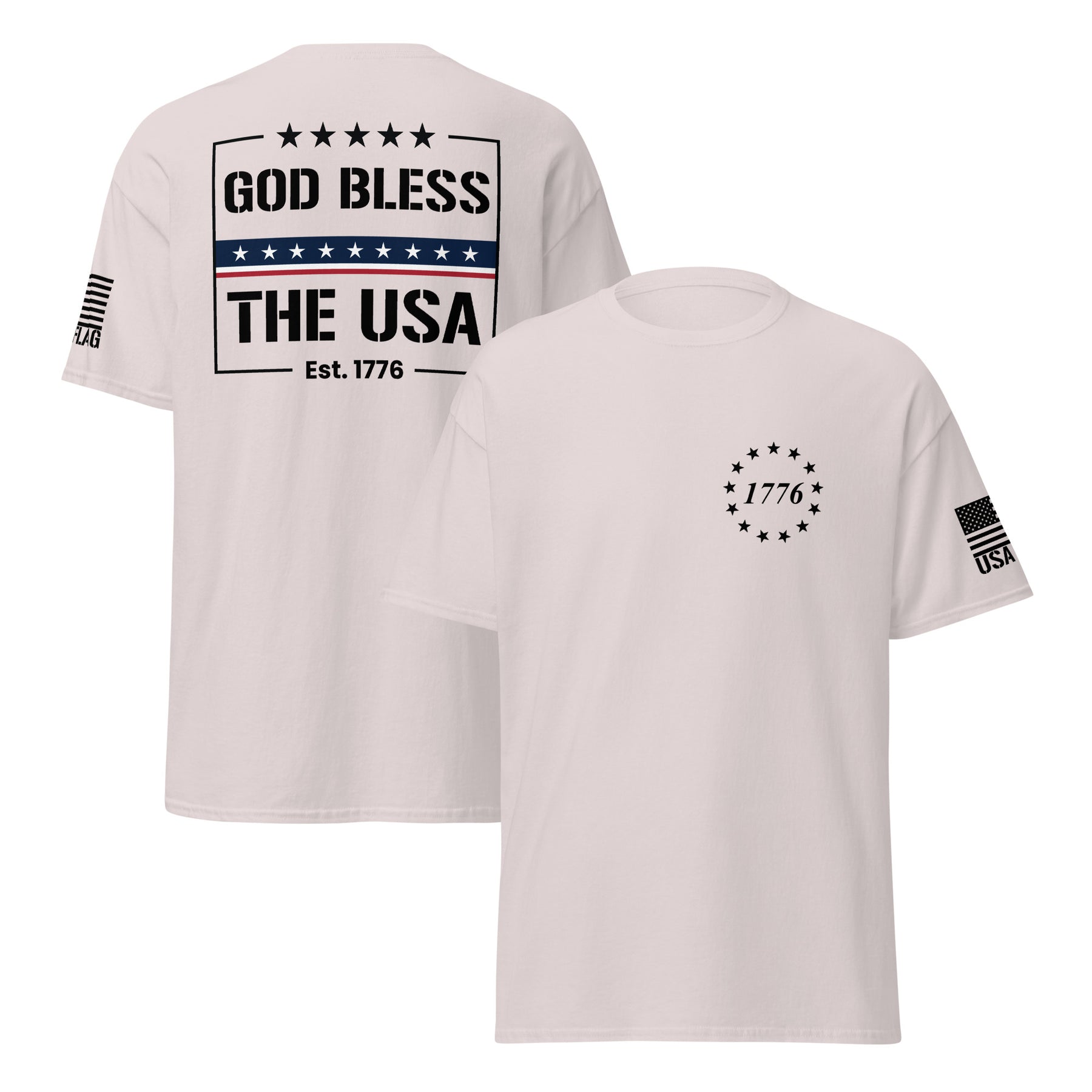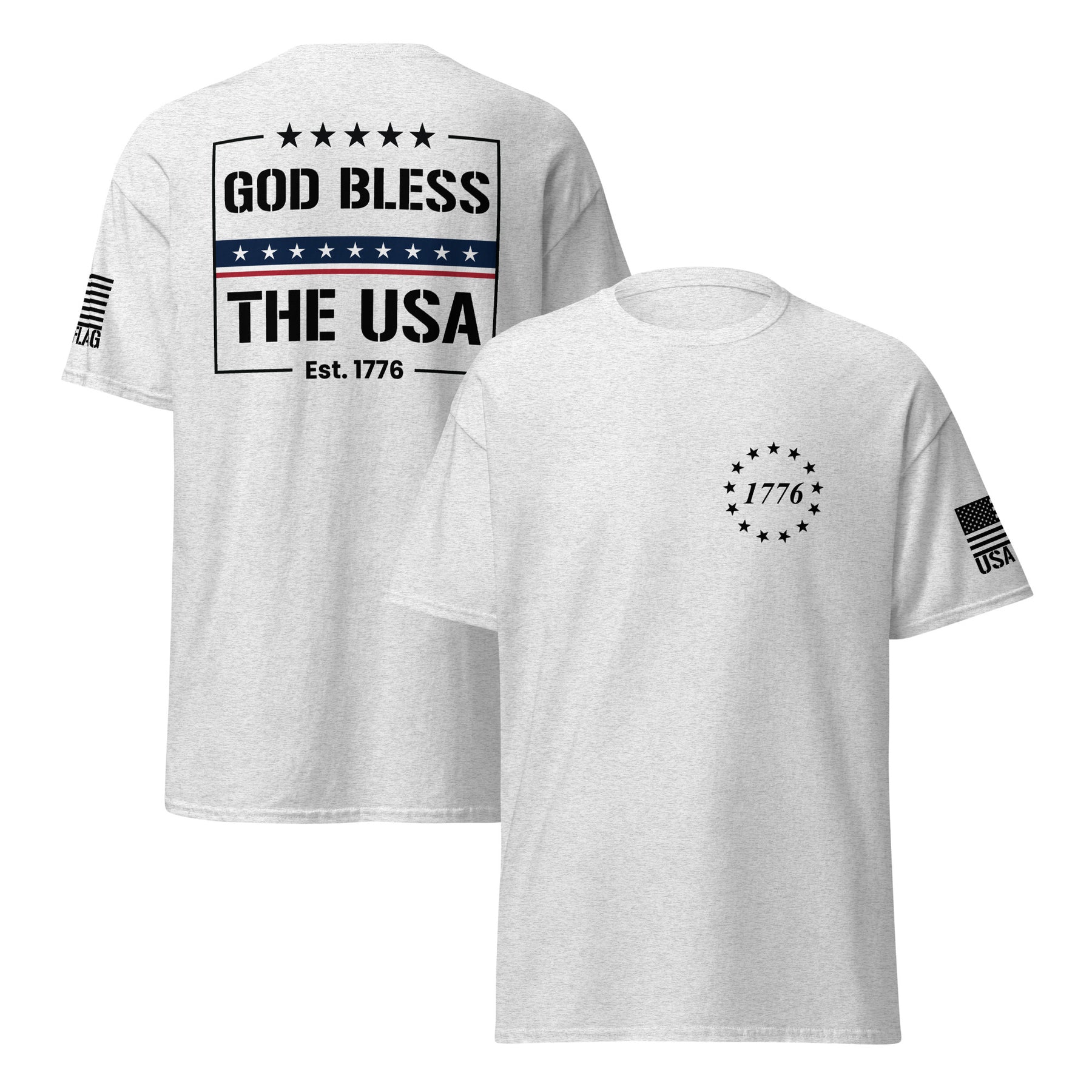 Declare your patriotism with our God Bless The USA T-shirts. Crafted from soft, durable cotton, these shirts are perfect for Fourth of July celebrations, Memorial Day, Veterans Day, or any day you want to proudly display your love for America. Featuring bold, vibrant designs, our tees are ideal for family gatherings, community events, or simply expressing your national spirit. Explore a variety of styles and sizes for men, women, and children, ensuring the perfect fit for every patriot.