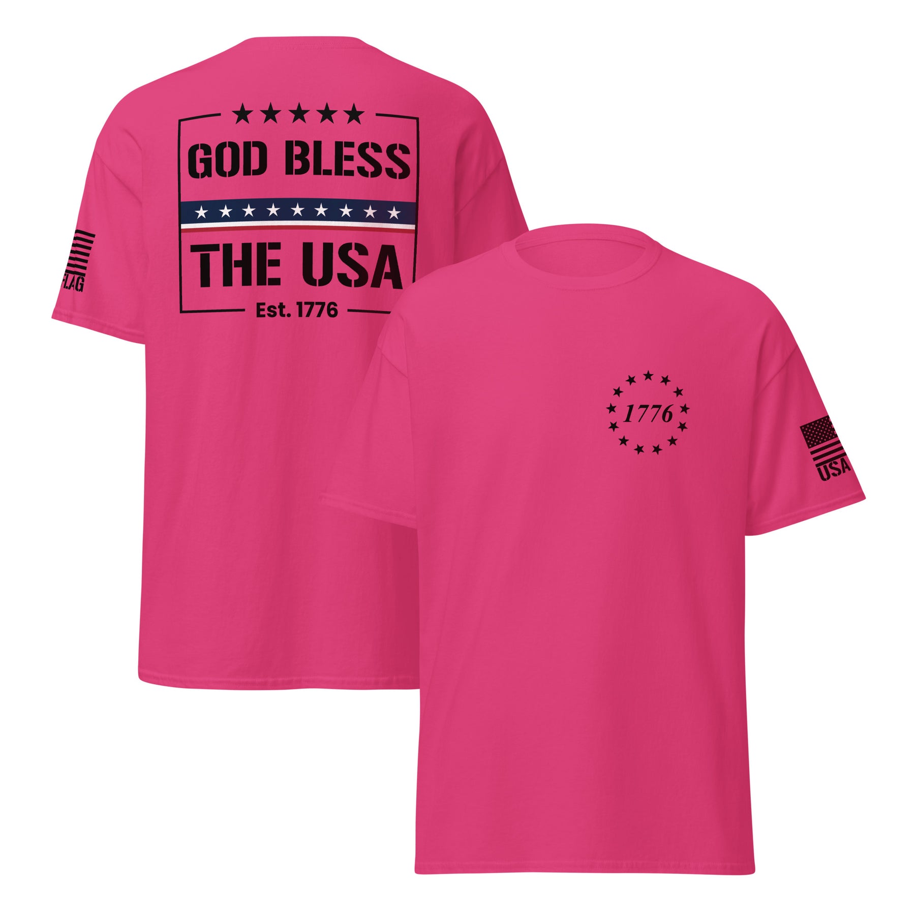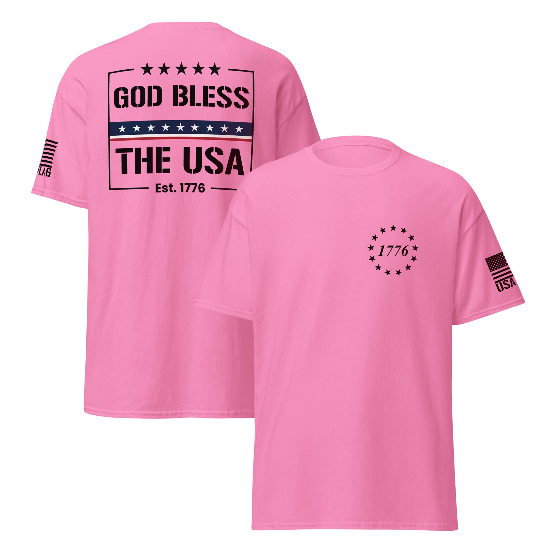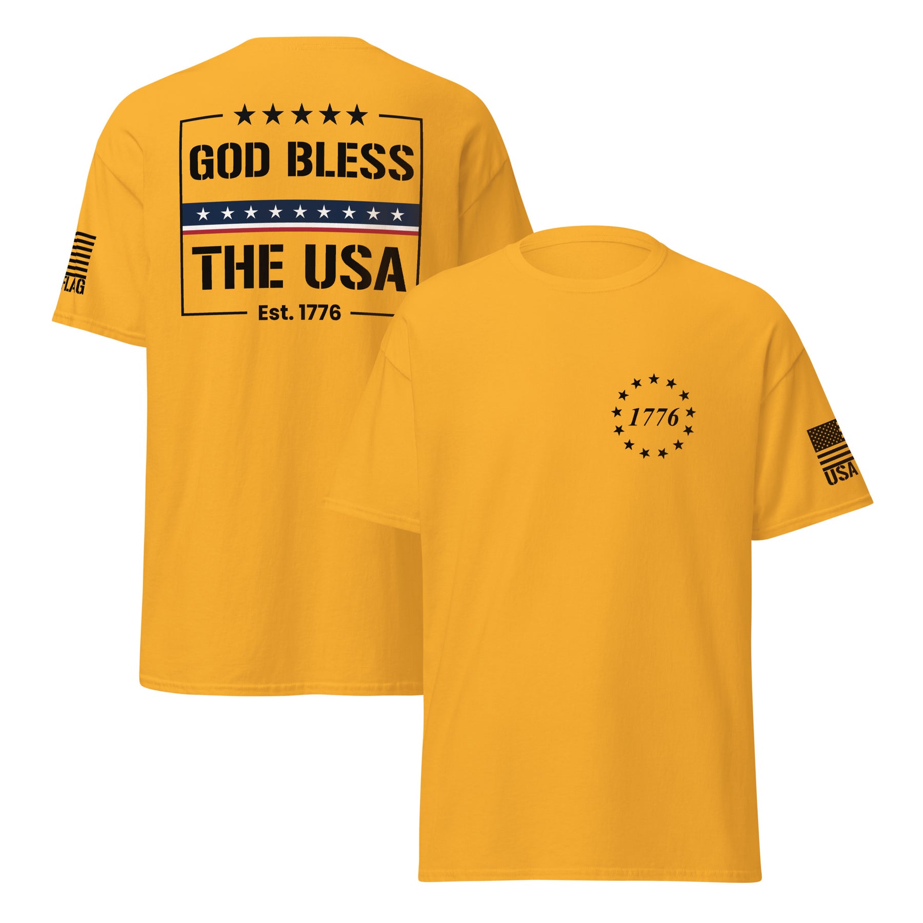 Declare your patriotism with our God Bless The USA T-shirts. Crafted from soft, durable cotton, these shirts are perfect for Fourth of July celebrations, Memorial Day, Veterans Day, or any day you want to proudly display your love for America. Featuring bold, vibrant designs, our tees are ideal for family gatherings, community events, or simply expressing your national spirit. Explore a variety of styles and sizes for men, women, and children, ensuring the perfect fit for every patriot.