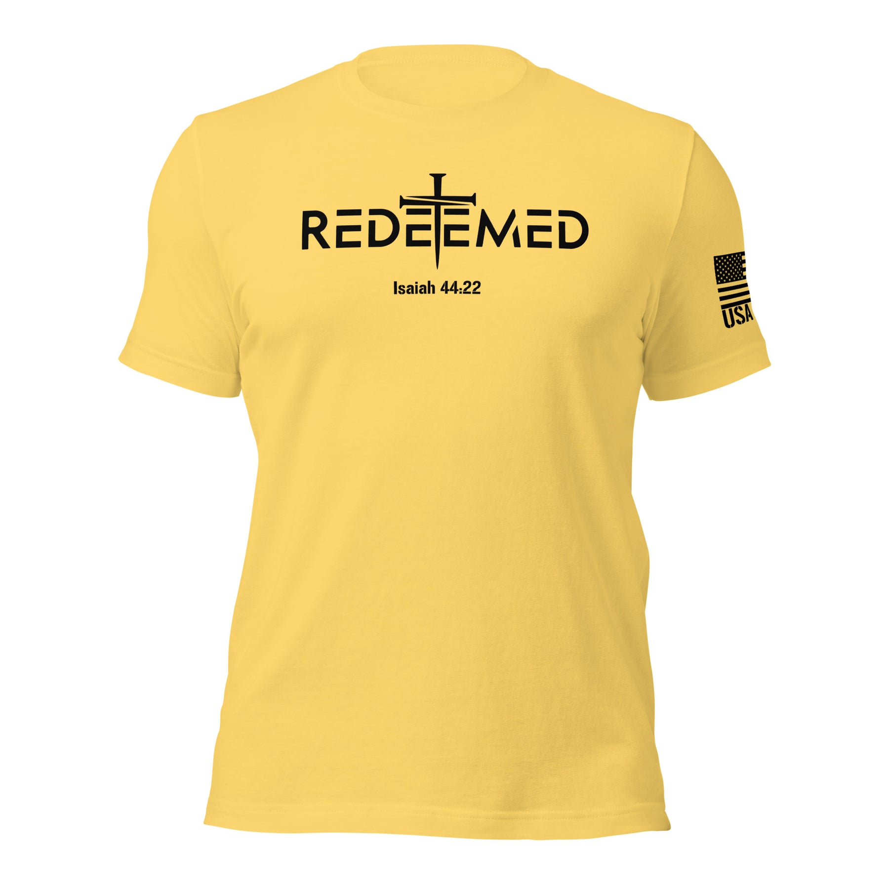 Stand out with our DTF-printed Redeemed Isaiah 44:22 T-shirt, a unique piece that blends superior comfort with a powerful message. Unlike standard t-shirts, this one is crafted from a premium blend of 100% combed and ring-spun cotton, making it exceptionally soft, breathable, and pre-shrunk for a perfect fit from the very first wear. The high-quality Direct-to-Film (DTF) printing ensures the striking Isaiah 44:22 design is vibrant, long-lasting, and won't crack or fade over time.