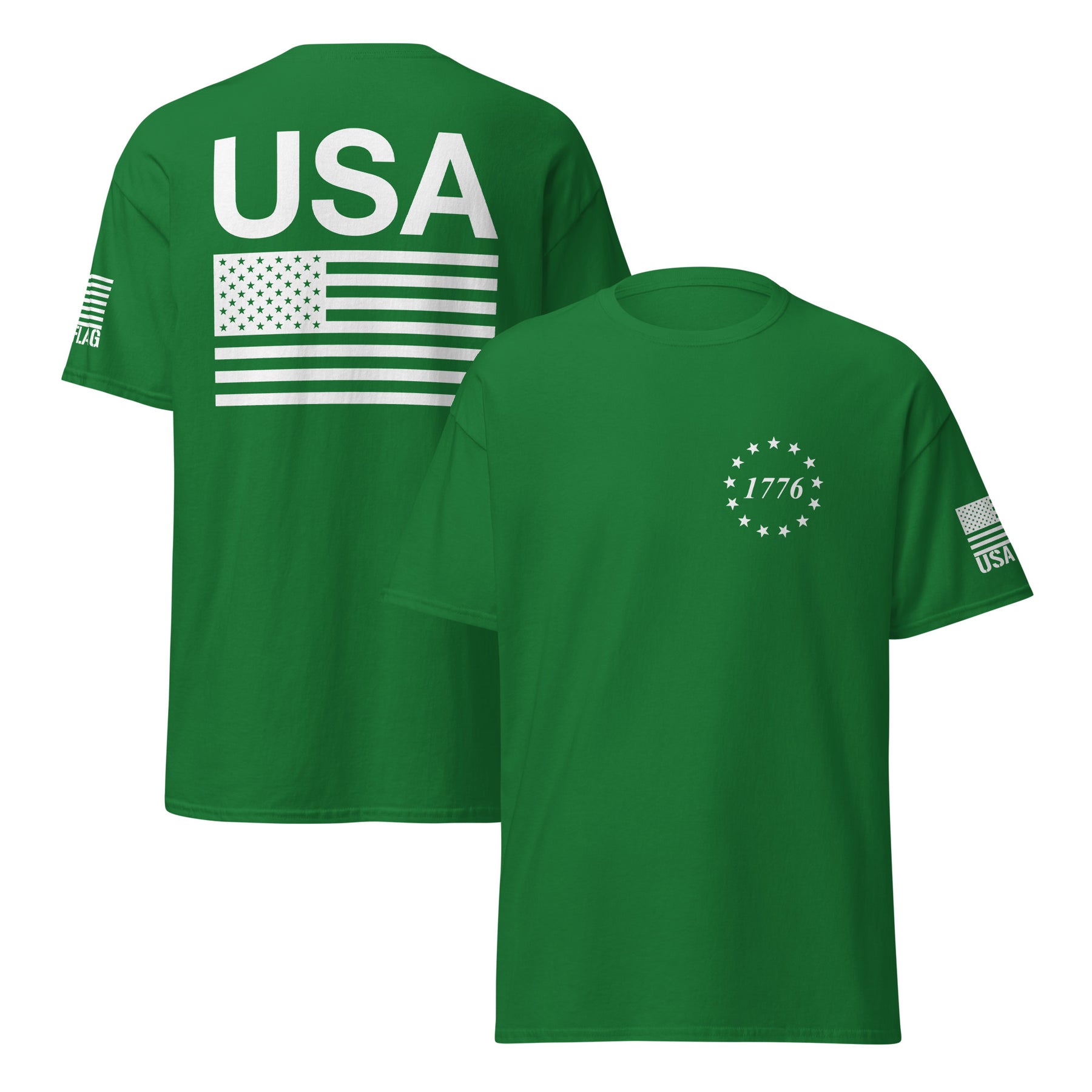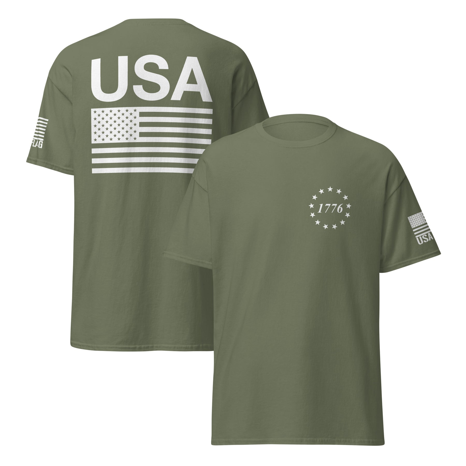 Elevate Your Patriotism: USA Flag T-Shirts with All-White Logos
