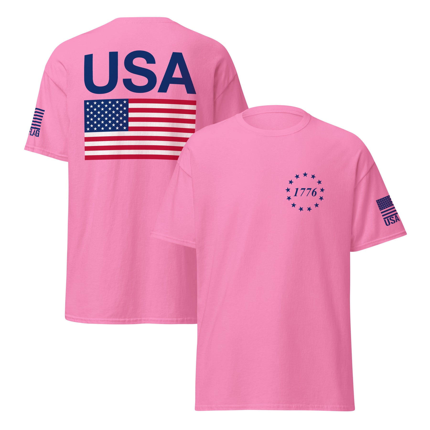 Honor the red, white, and blue with our premium USA Flag T-Shirts! Made from soft, breathable cotton, these tees are perfect for showing your patriotism on the Fourth of July, Memorial Day, or any day you feel proud to be an American.