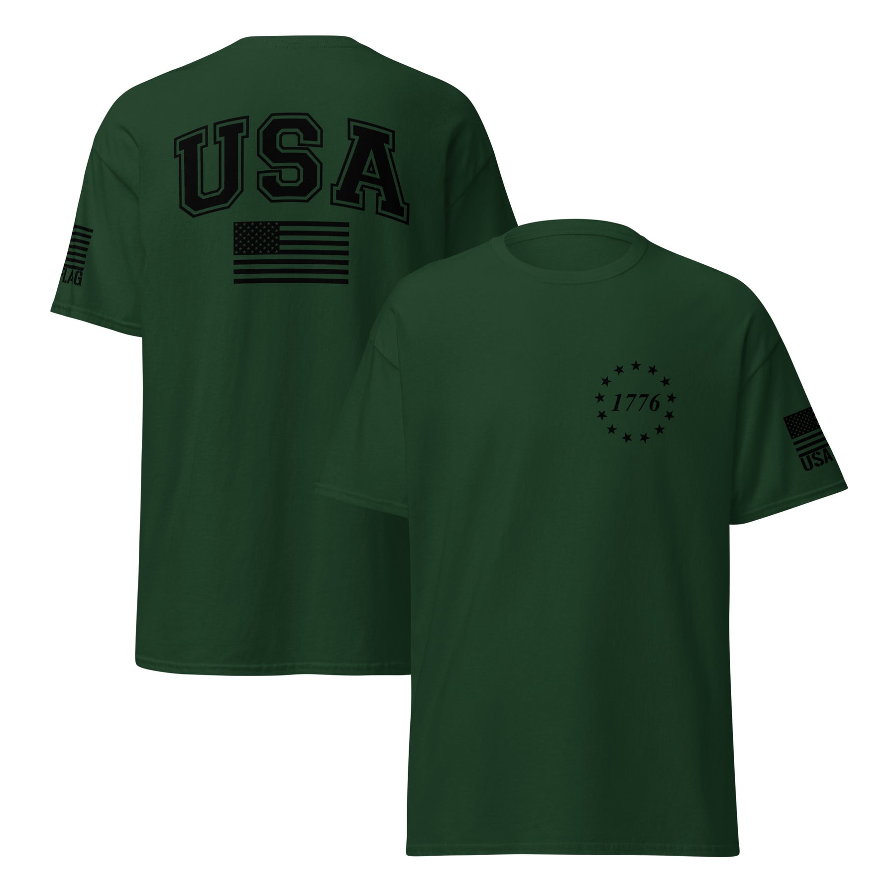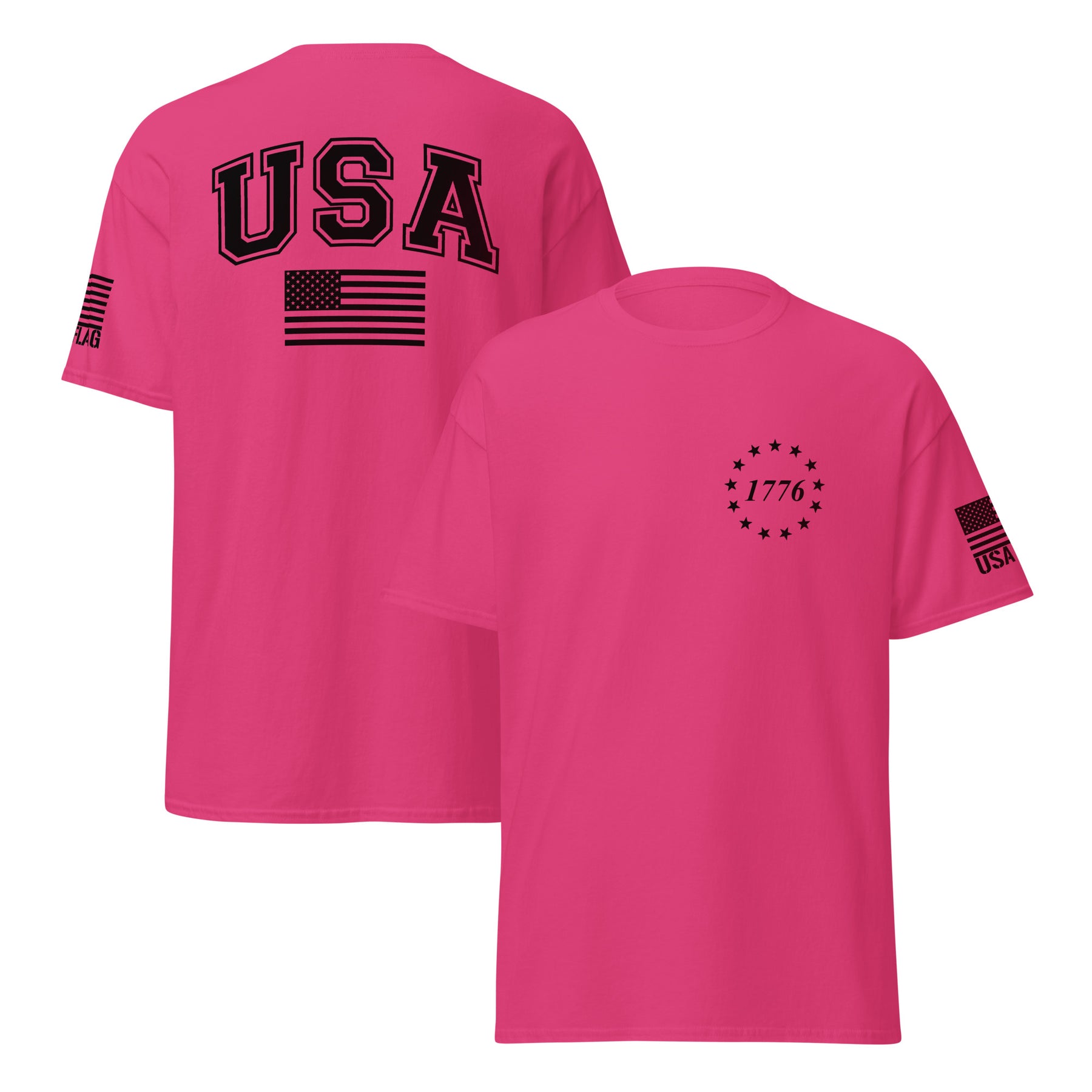 Crafted from soft, durable fabric, our USA Flag Black College Font T-shirts offer both comfort and longevity. Available in a range of sizes, these versatile shirts make a great gift for friends and family. Whether you're heading to a sporting event, a casual gathering, or simply want to showcase your patriotism, our USA Flag Black College Font T-shirts are the perfect choice. Order yours today and wear your American pride with style!